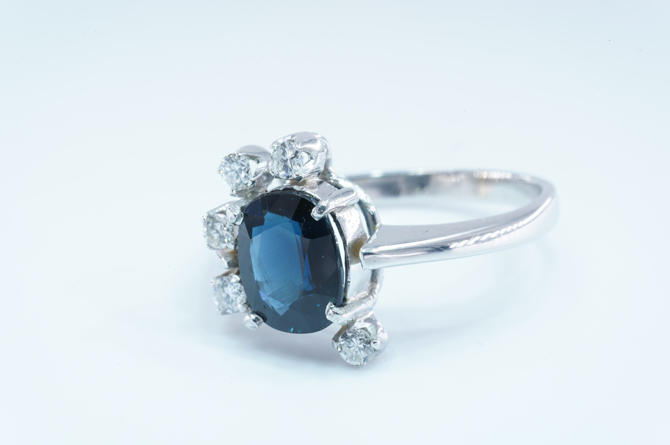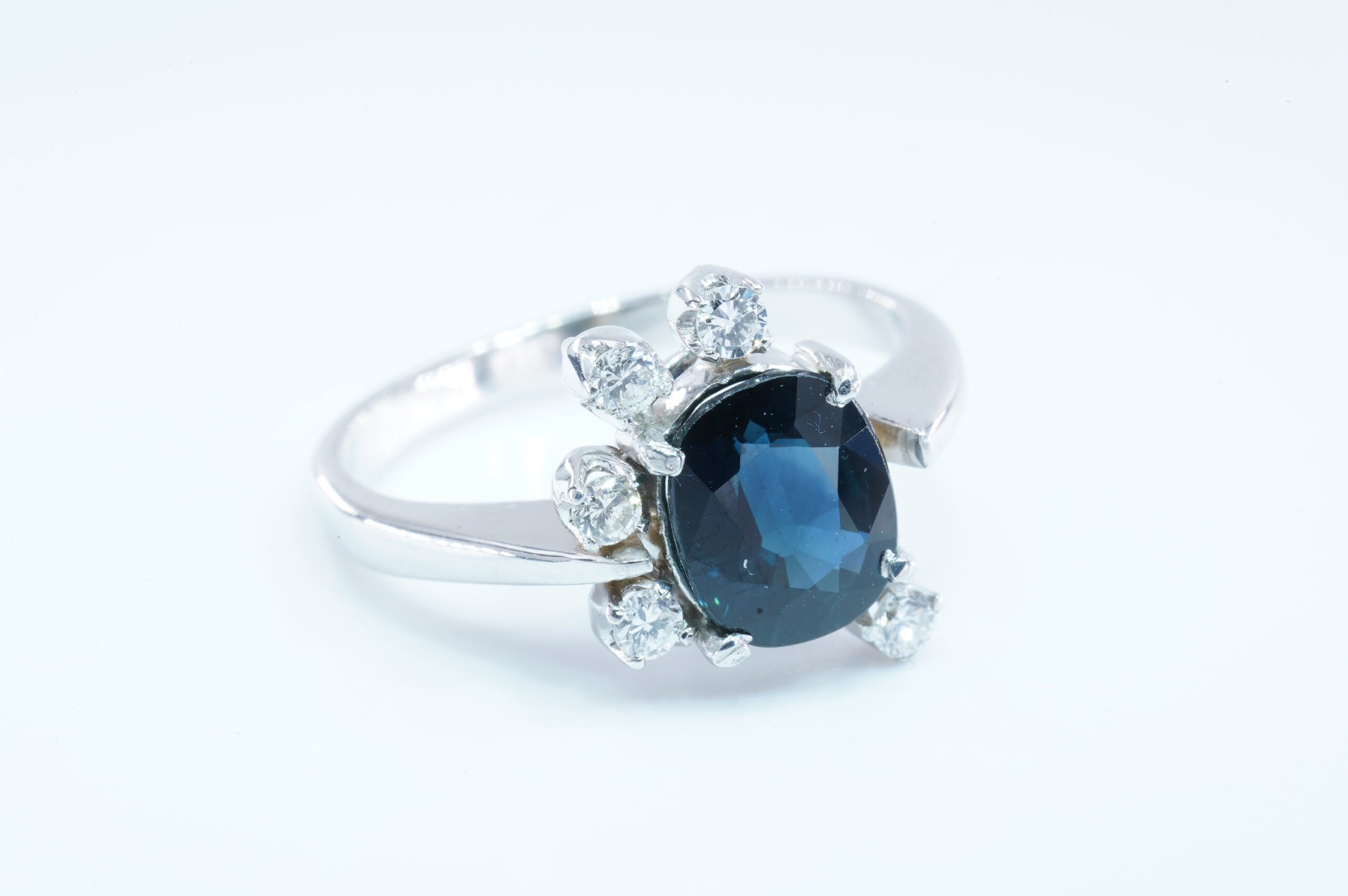 Weißgoldring mit Brillanten und Saphir – „Blauer Stern I“